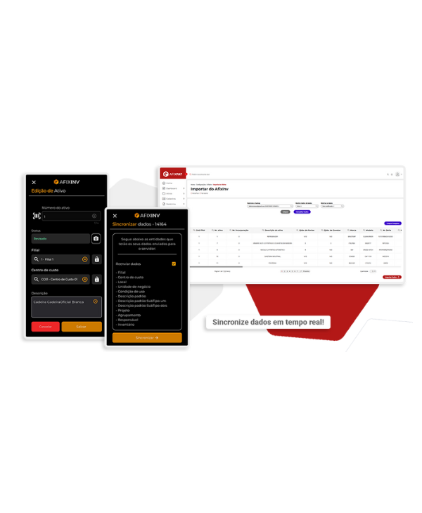 • Integração com o AfixInv para inventário em tempo real: Realiza coletas de dados em campo com total mobilidade e tenha tudo sincronizado instantaneamente no Afixpat.